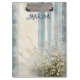 Un rociado de aliento de bebé blanco sobre rayas azules y blancas desvanecidas crea un hermoso portapapeles. Un aspecto vintage que siempre tiene estilo. ...