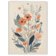 Un simple y minimalista ramo de boho en siena cruda y albaricoque, con un follaje verde y beige, sobre un fondo tostado.