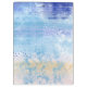 Un diseño abstracto de medios mixtos en una paleta azul, turquesa y amarilla.