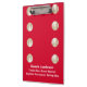 Este portapapeles es un regalo único y divertido para el entrenador del equipo de béisbol. El fondo rojo con las letras blancas es muy luminoso y llamativo. Está decorado con bambalinas blancas con puntas rojas. En la parte delantera, el texto de ejemplo tiene cabida para 3 líneas, que se pueden modificar o eliminar fácilmente. La parte de atrás está cubierta por el rojo con las pelotas de béisbol y la palabra "COACH". La palabra COACH en la parte posterior se puede modificar o eliminar fácilmente. ¡A tu entrenador del equipo de béisbol le encantará! Un gran "Gracias" del equipo. Todos los derechos reservados © 2014 Alan & Marcia Socolik.