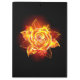 Rosa en llamas del fuego y la llama sobre fondo negro.
