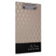 Elegante y elegante patrón de fleur de lis metálico-rosa personalizado y portapapeles negro con un aspecto purpurina y granulado.