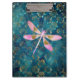 Carpeta De Pinza Rosa Dragonfly de oro sobre fondo floral turquesa