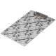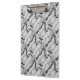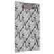 rosa blanco trepando una valla de eslabón de cadena, hecho en tono gris. El tallo del rosa es negro con espinas negras y se ha tachado la valla grises y negras. Hay una doble imagen de una rosa blanca que parece una marca de agua o un efecto fantasma. El diseño se hace en un patrón ininterrumpido.