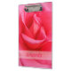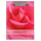 El portapapeles de rosa rosado presenta una fotografía de primer plano de los pétalos delicados de una bella rosa rosa junto con una barra horizontal para insertar texto personalizado. ¡Bella pura! © Morning 6