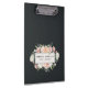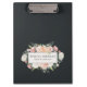 El elegante portapapeles floral incluye su nombre y/o nombre de negocio enmarcado por un borde de flores acuáticas exuberantes en rosa, verde salvia, melocotón y crema, sobre un fondo de carbón de carbón a cielo abierto que contrasta con el negro. El diseño se repite al revés. Las tarjetas de visita y los accesorios que coincidan están disponibles debajo o en nuestra tienda.