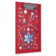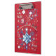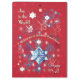 Saludos con copos de nieve en rojo, azul y blanco. ¡Que tengas unas vacaciones acogedoras y cálidas! Salud!