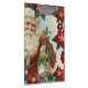 Vintage illustration of Santa Claus bringing gifts and presents for Christmas, decorated with holly berries and poinsettias.