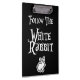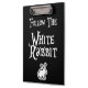 Sigue al Conejo Blanco. Alicia en el libro de Wonderland diciendo. Cita divertida con diseño tipográfico. Arte de tipografía con citas de libros. Versión en negro.