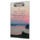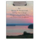 Mantén tus formularios y papeles en orden en casa o en la oficina con este portapapeles acrílico que muestra la imagen de una puesta de sol colorida y rosa de la capa marina junto con las palabras inspiradoras de la Oración de la Serenidad impresas en la parte delantera.