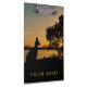 Un hermoso portapapeles negro y dorado con una magnífica imagen de puesta de sol que muestra (el contorno) un canguro, un árbol y las mundialmente famosas Montañas Glass House en Queensland, Australia. La espectacular puesta de sol dorada con el reflejo en el agua le da un gran color a la imagen. Perfecto para organizarse y mantener sus archivos juntos! Personalízalo con tu propio nombre o texto (o suprítelo si solo quieres disfrutar de la impresionante foto)!