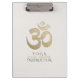 Elegante Personalizado de plantillas de portapapeles del instructor de mediación de yoga - Moderno Relieve metalizado dorado sencillo Minimalista de imitación ciego Grabado en relieve / símbolo OM grabado en papel blanco. Ideal para instructores de yoga / Fitness Personal Trainer / Spa / Salón de masajes / Resort de belleza / Terapia de masajes y otros profesionales creativos...