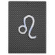 Un símbolo Leo Zodiac sobre un fondo de impresión de textura de tipo negro de fibra de carbono. Un diseño de arte urbano moderno para una gran idea de regalo de cumpleaños personalizado. Utilice el vínculo "Preguntar a este diseñador" para contactarnos con sus solicitudes de diseño especiales o para obtener ayuda con sus necesidades de personalización.
