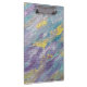 Quiet Reign is an abstract piece defined by its soothing, cool color palette and energetic brushwork. The painting features diagonal sweeps of soft lavender, tranquil aqua, and deep violet, punctuated by bold, shimmering metallic gold accents. The overall effect is one of serene motion, like a gentle rain shower illuminated by a hidden golden light. This artwork adds a touch of modern, peaceful sophistication to any space or product.