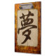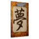 Carácter de kanji para el sueño en el papel de pergamino viejo con un fondo hermoso y elegante del oro del rojo y del grunge. ¡Mismo el zen como arte digital traerá un sentido de la paz y de la tranquilidad en su espacio de la vida y de trabajo!