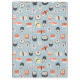Patrón de sushi japonés lindo y divertido en un fondo azul.