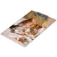 Vintage illustration of a lovely young girl praying before having breakfast in bed while a cute little kitten and a small dog are watching, eager to catch a piece of food. Oil on canvas by Charles Burton Barber.