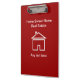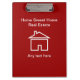 Tablero de acrílico de encargo del negocio con imagen gráfica de un símbolo de la casa en lados y plantillas rojas del color y del texto del fondo que usted puede modificar para requisitos particulares en línea. Diseñado para un agente inmobiliario, un agente inmobiliario, un agente, o una agencia. Un tablero lateral doble moderno simple para promover su negocio.