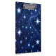 night sky filled with glowing stars and snowflakes in various sizes and styles. Set against a deep blue backdrop, the bright white and icy blue elements create a striking contrast. Wispy, wave-like light trails weave through the composition, adding motion and depth. The overall effect is magical and wintery—evoking a sense of wonder, serenity, and seasonal charm.