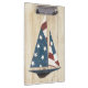 © Avery Tillmon/Apple salvaje. Velero con la bandera americana en el fondo de madera