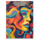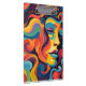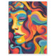 Los muelles y rizos vivos en un arcoiris de colores crean el perfil abstracto de un hombre o una mujer con una expresión pacífica. Los tonos azules, naranjas, amarillos y rojos se mezclan armoniosamente para delinear los rasgos faciales y el cabello fluido.