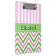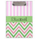 Carpeta De Pinza Zigzag, Chevron, Stripes, Rosa, Verde, Tu Nombre