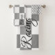 Toallas de raza con un damero gris y blanco. El texto de las carreras puede ser personalizado o el texto es extraíble. Gran regalo para un equipo de carreras, un hincha o un patrocinador.