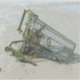 Fotografía realzada digitalmente de un carro de compras descartado en barro impreso en un pegatina.