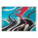 un blabk y un blanco con rojo y acentos de la aguamarina en un diseño abstracto ondulado.
