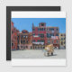 Pintura de la plaza de Venecia. Carro con cajas en medio de la antigua plaza italiana con edificios coloridos en Venecia, Italia. Servicio postal de entrega en Italia. Cajas en paz.