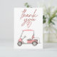 Esta tarjeta de agradecimiento de carrito de golf es la manera perfecta de expresar su gratitud con un toque de diversión y color. Ya sea que le estés dando las gracias a un amigo, familiar o colega, esta carta caprichosa incluye un carrito de golf vibrante acompañado de un mensaje de "Gracias". Ideal para los amantes del golf, esta carta es perfecta para cumpleaños, ocasiones especiales o sólo un gesto de aprecio.