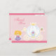 Esta carta de agradecimiento tiene un lindo tema de princesa. En la parte delantera hay una princesa rubia de pelo parada al lado de un carruaje real. El fondo es de polkadot rosa y blanco. En el fondo, un fondo de polkadot rosa y blanco con un borde de vieira rosa en la parte superior e inferior. Hay una zapatilla de cristal en una almohada en la esquina inferior. Puede personalizar fácilmente su mensaje de agradecimiento en la parte posterior. Derechos reservados © Zenware Designs