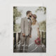 Un diseño de tarjeta de fotos con letras blancas y un mensaje de agradecimiento personalizado a sus invitados.