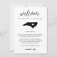 Comparte un mensaje de bienvenida para tus invitados bodas de Carolina del Norte, así como un itinerario o programa de los eventos del fin de semana. Front muestra su mensaje de bienvenida con un mapa de siluetas del estado de Carolina del Norte con un corazón adentro. Personaliza el reverso con tu día de boda o itinerario de fin de semana de boda. Perfecto para incluir en el hotel bolsos de bienvenida o entregar a sus huéspedes en la habitación.