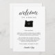 Comparte un mensaje de bienvenida para tus invitados bodas de Oregon, así como un itinerario o programa de los eventos del fin de semana. Delante presenta su mensaje de bienvenida con un mapa de siluetas del estado de Oregón con un corazón en el interior. Personaliza el reverso con tu día de boda o itinerario de fin de semana de boda. Perfecto para incluir en el hotel bolsos de bienvenida o entregar a sus huéspedes en la habitación.