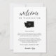 Comparte un mensaje de bienvenida para tus invitados bodas de Washington, así como un itinerario o programa de los eventos del fin de semana. Front muestra su mensaje de bienvenida con un mapa de siluetas del estado de Washington con un corazón adentro. Personaliza el reverso con tu día de boda o itinerario de fin de semana de boda. Perfecto para incluir en el hotel bolsos de bienvenida o entregar a sus huéspedes en la habitación.
