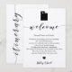 Esta tarjeta moderna y elegante es el lugar perfecto para las bolsas de bienvenida de su hotel. Introduzca los eventos principales y una nota personalizada para ayudar a sus invitados a navegar el fin de semana.