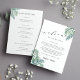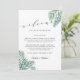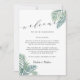 Comparte un mensaje de bienvenida para tus invitados tropicales o bodas de playa, así como un itinerario o calendario de los eventos del fin de semana. Delante del hotel encontrarás un mensaje de bienvenida acentuado por delicadas frondas verdes de palmeras en las esquinas. Personaliza el reverso con tu día de boda o itinerario de fin de semana de boda. Perfecto para incluir en el hotel bolsos de bienvenida o entregar a sus huéspedes en la habitación.