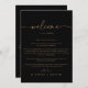 Esta carta de bienvenida de boda clásico dorado negro es perfecta para un boda moderno. El diseño, sencillo y elegante, presenta una tipografía de escritura clásica y elegante en oro. Personalice la parte delantera con un mensaje de bienvenida para sus invitados y sus nombres. Personalice la parte posterior con la programación de eventos y otra información útil.