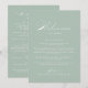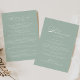 Esta carta de bienvenida boda de caligrafía blanca verde es perfecta para un boda rústico. El diseño es sencillo y elegante, con una tipografía de guion clásica y elegante en un fondo verde. Personalice la parte delantera con un mensaje de bienvenida para sus invitados y sus nombres. Personalice la parte posterior con la programación de eventos y otra información útil.
