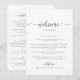 Esta carta de bienvenida caligráfica de boda plateado es perfecta para un boda rústico. El diseño, sencillo y elegante, presenta una tipografía de escritura clásica y elegante en plata. Personalice la parte delantera con un mensaje de bienvenida para sus invitados y sus nombres. Personalice la parte posterior con la programación de eventos y otra información útil.