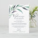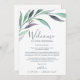 Estas tarjetas de bienvenida y de itinerario de eucalipto verde púrpura son perfectas para un moderno boda al aire libre. El diseño botánico, sencillo y elegante, presenta una vegetación acuática con acentos de lavanda y morado oscuro. La parte delantera de la tarjeta incluye una carta de bienvenida y la parte trasera de la tarjeta incluye el itinerario del boda. Estas notas son perfectas para bodas de destino y bolsos de bienvenida para huéspedes del hotel.