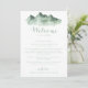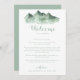 Esta carta de bienvenida de bodas de campo verde de montaña es perfecta para un boda rústico. El diseño presenta una montaña verde pintada a mano con una acuarela, inspirando un tema de campo. Personalice la parte delantera con un mensaje de bienvenida para sus invitados y sus nombres. Personalice la parte posterior con la programación de eventos y otra información útil.