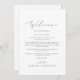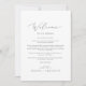 Estas delicadas cartas de bienvenida y tarjetas itinerarias de boda plateado son perfectas para un boda moderno. El romántico diseño minimalista presenta una bonita y elegante tipografía de color gris plateado sobre un fondo blanco con un aspecto limpio y sencillo. La parte delantera de la tarjeta incluye una carta de bienvenida y la parte trasera de la tarjeta incluye el itinerario del boda. Estas notas son perfectas para bodas de destino y bolsos de bienvenida para huéspedes del hotel.