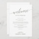 Estas elegantes cartas de bienvenida e itinerarios de boda sabio son perfectas para un boda sencillo. El diseño neutro cuenta con una tarjeta minimalista decorada con una tipografía romántica y caprichosa de color verde sabio. La parte delantera de la tarjeta incluye una carta de bienvenida y la parte trasera de la tarjeta incluye el itinerario del boda. Estas notas son perfectas para bodas de destino y bolsos de bienvenida para huéspedes del hotel.