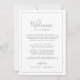 Estas minimalistas tarjetas de bienvenida de bienvenida e itinerario son perfectas para una bolsa de bienvenida de bodas de destino. El moderno diseño romántico presenta una tipografía clásica de color gris plateado y blanco, acompañada de una caligrafía rústica y elegante con un estilo de letra a mano vintage. Personalizable de cualquier color. Mantenga el diseño simple y elegante, tal como está, o lo personaliza añadiendo sus propios gráficos y obras de arte. La parte delantera de la tarjeta incluye una carta de bienvenida y un itinerario. Incluya un mapa de su complejo turístico con las principales ubicaciones indicadas en la parte posterior de la tarjeta.