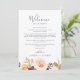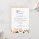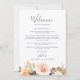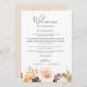 Esta carta de bienvenida rústica y tarjetas itinerantes son perfectas para una boda en otoño. El elegante diseño en tonos tierra incluye flores de color acuático rústico en terracota, cobre, naranja quemado, melocotón, rosa y blanco crema de color rosa y rosa negro con un estilo boho vintage. La parte delantera de la tarjeta incluye una carta de bienvenida y la parte trasera de la tarjeta incluye el itinerario del boda. Estas notas son perfectas para bodas de destino y bolsos de bienvenida para huéspedes del hotel.