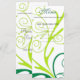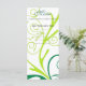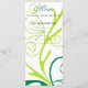 Carta de menú de cena para bodas, cumpleaños, aniversario, graduación, reuniones, celebraciones, elegante patrón de flora giratoria verde y amarilla.