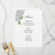 Carta de menú mostrada en papel básico en blanco con una hermosa huella de orquídeas blancas. Guión y texto estándar en negro. Personalizar los elementos del menú haciendo clic en el botón personalizar, busque a la derecha y busque los cuadros apropiados para cambiar a su información.