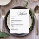 Un fondo blanco. Personalice y agregue sus nombres, fecha y menú. Texto negro. 1 hoja = 1 borde impreso del menú a borde.
